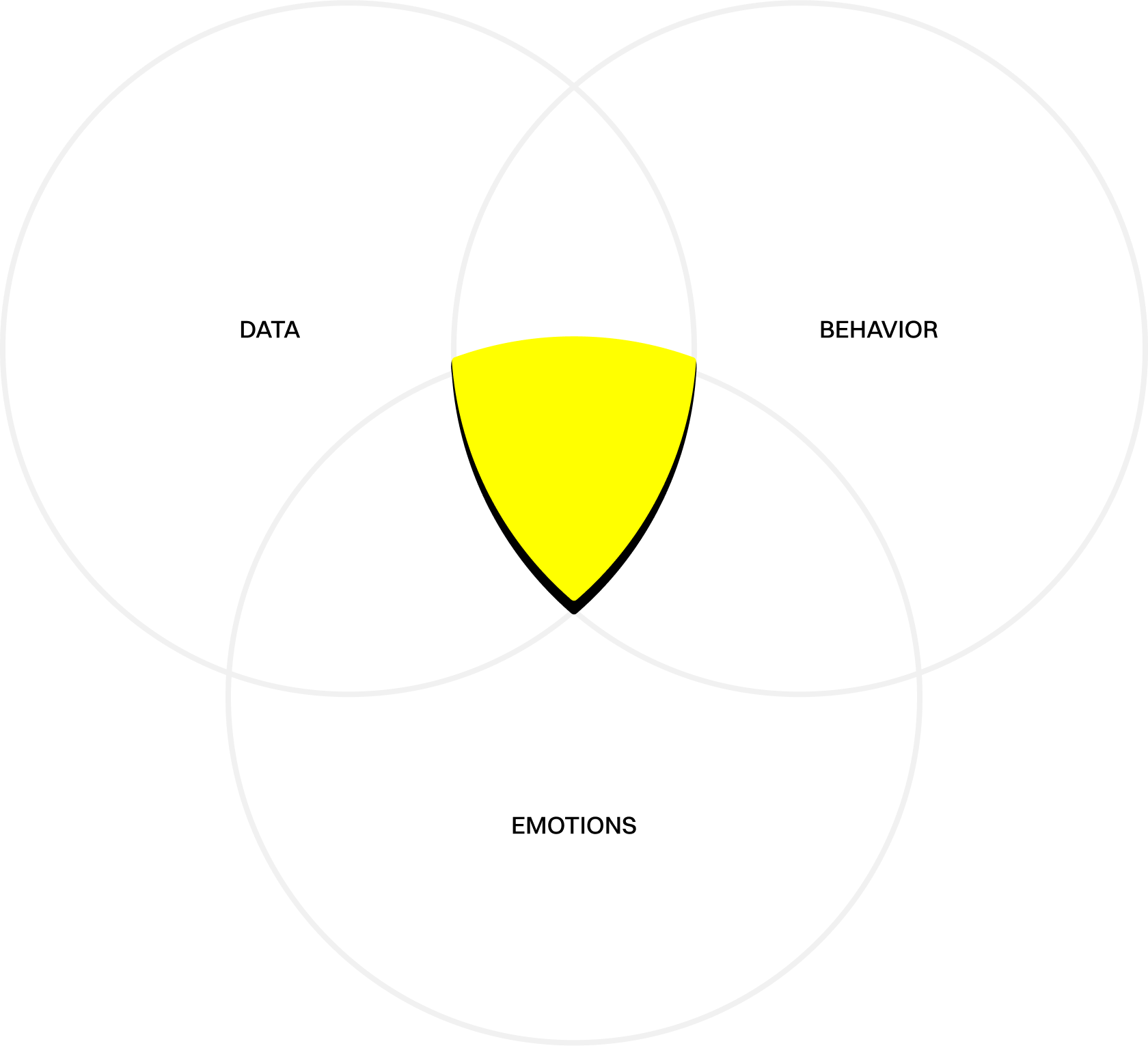 The starting point should always be an insight, always. To face this project we went looking for it at the intersection of data, behaviors and emotions, the place where actions make sense.