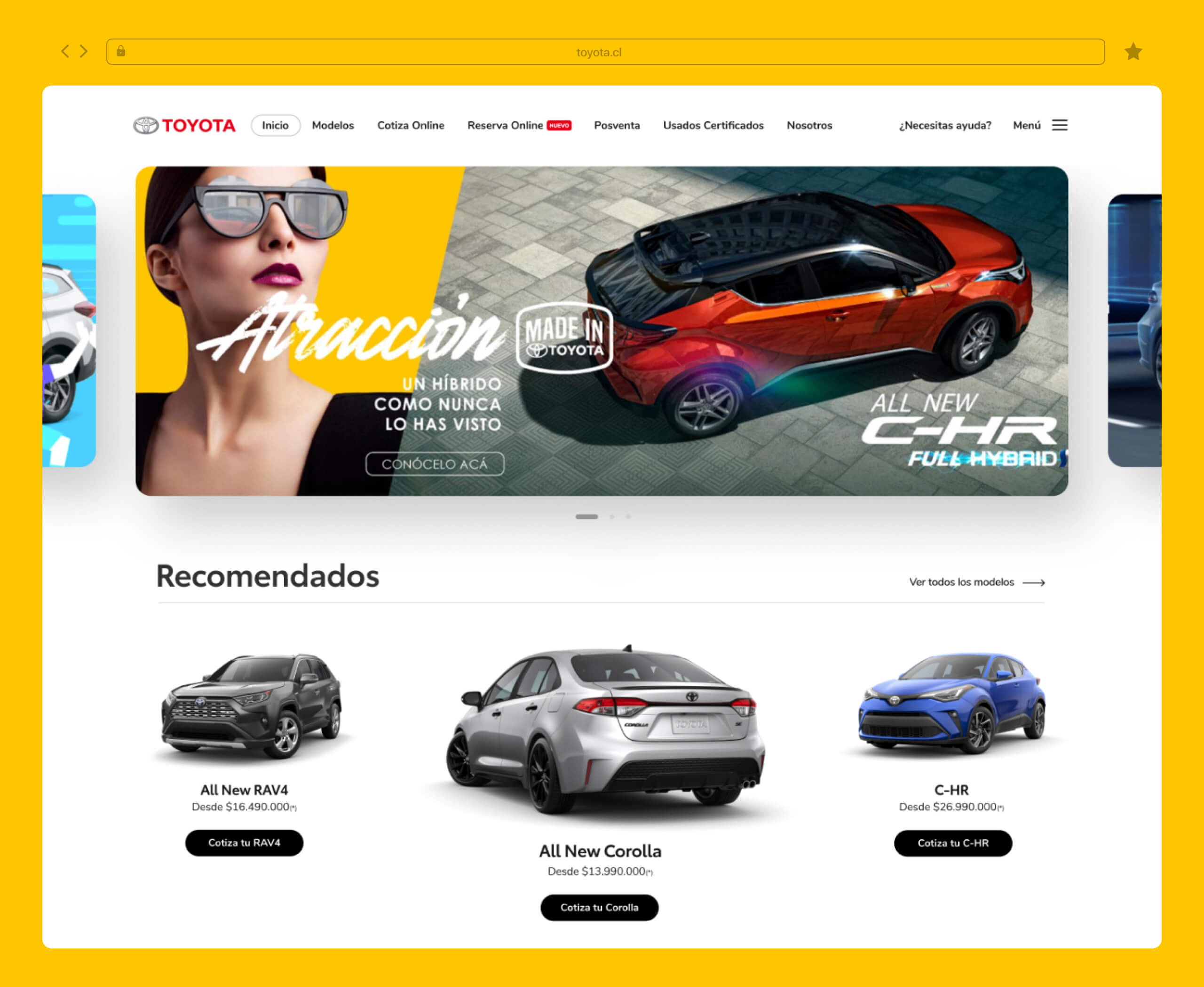We worked together with Toyota Chile on the construction of a digital platform that would boost business growth, aiming at performance, ROI and the Toyota experience throughout the user journey.