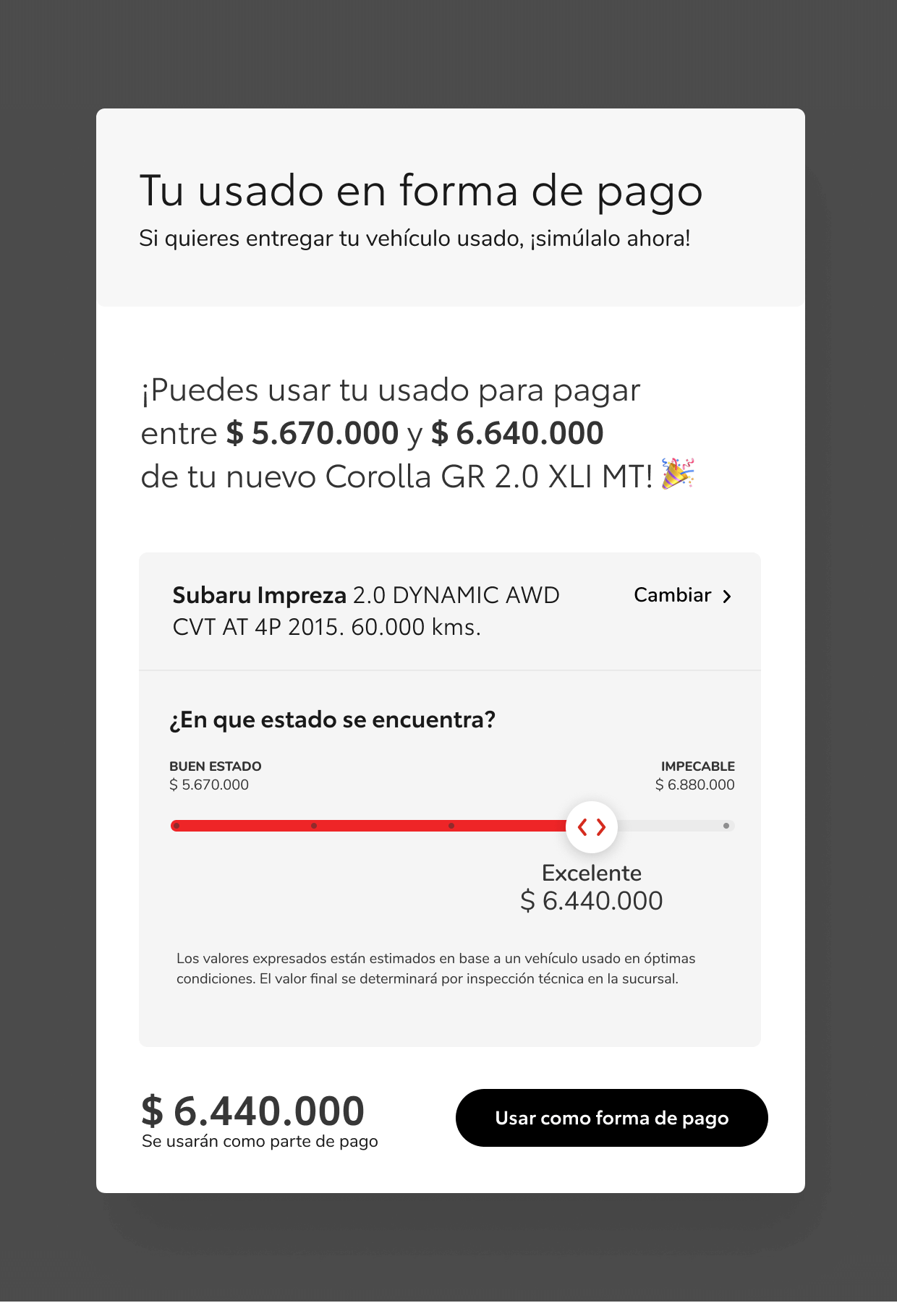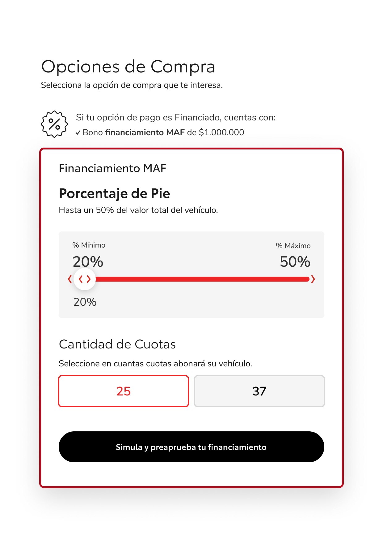 The platform allows you to configure discounts and promotions with the necessary business rules, quote online the value of your used car to deliver it as a payment and simulate and pre-approve a financing plan online on the remaining balance.