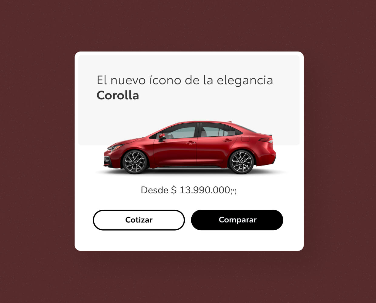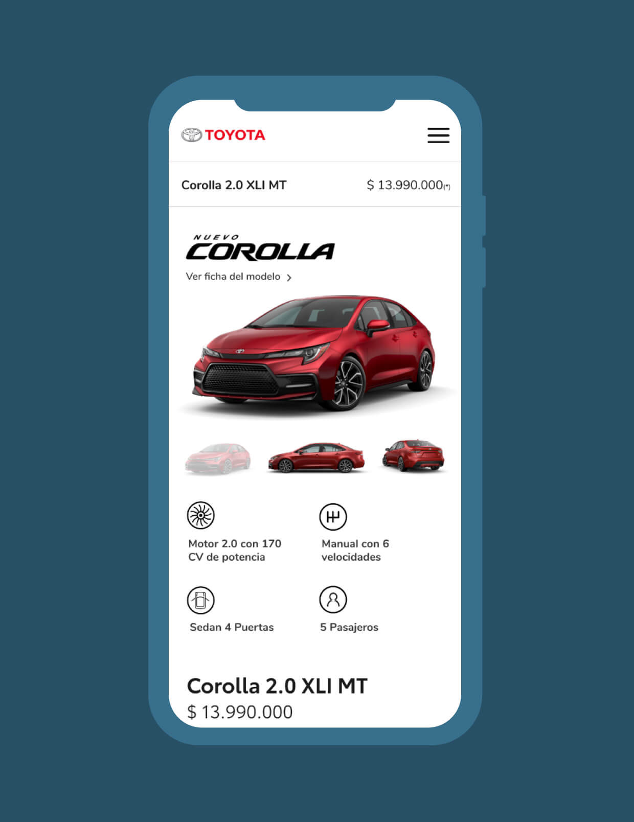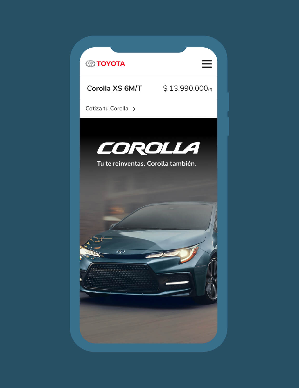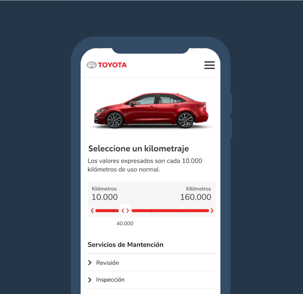 The user will be able to completely configure his Toyota, from its characteristics to simulating a financing plan, prepaying official services, delivering a used vehicle as a form of payment and the accessories with which he wishes to equip it.