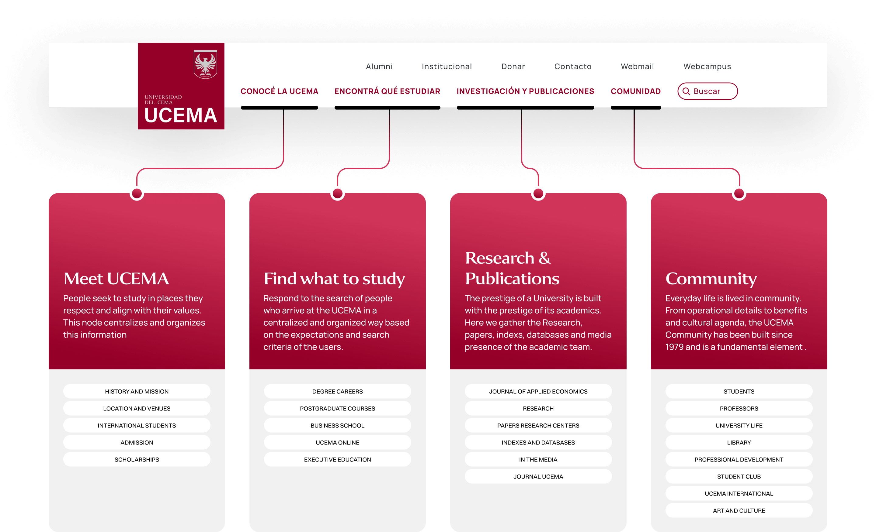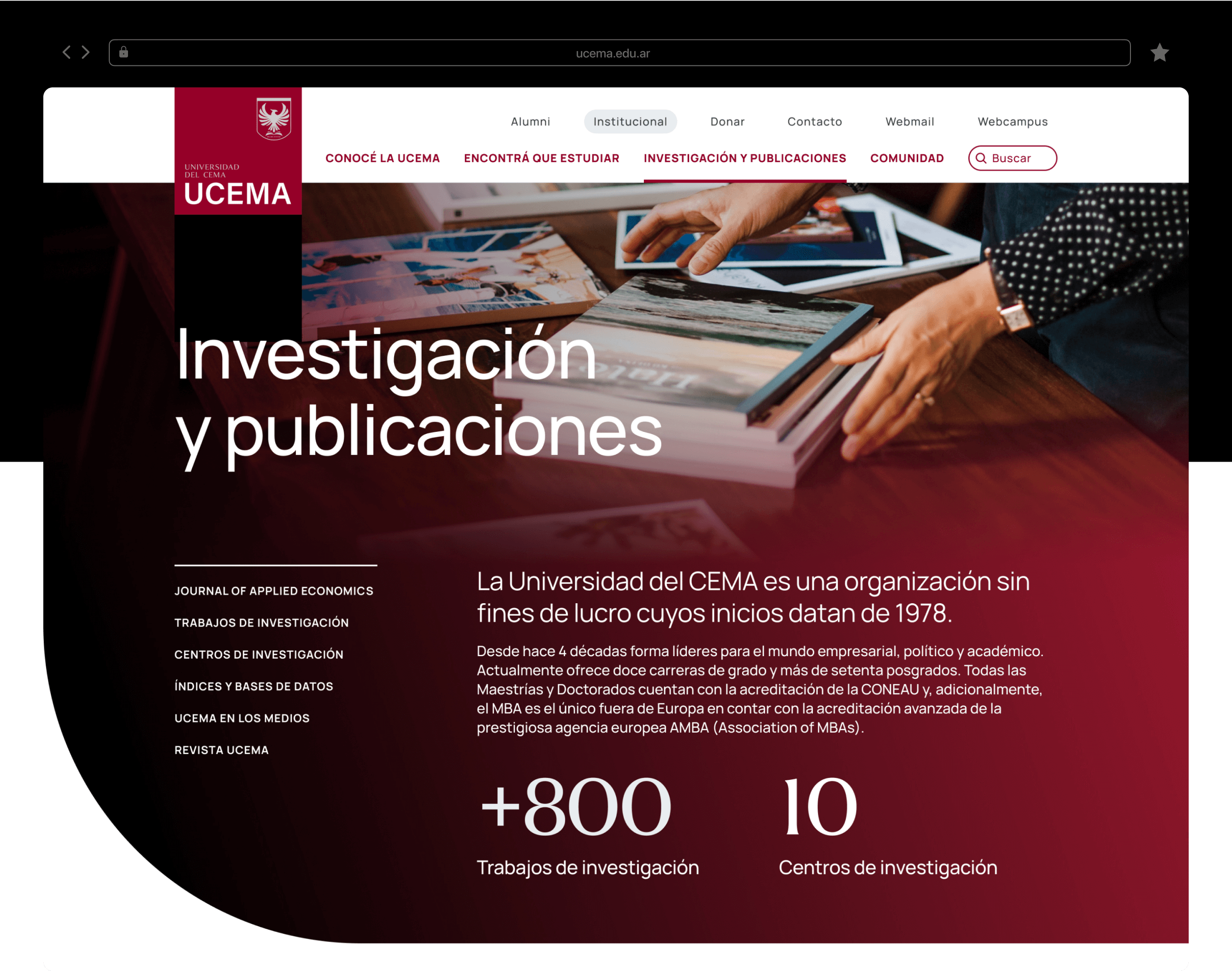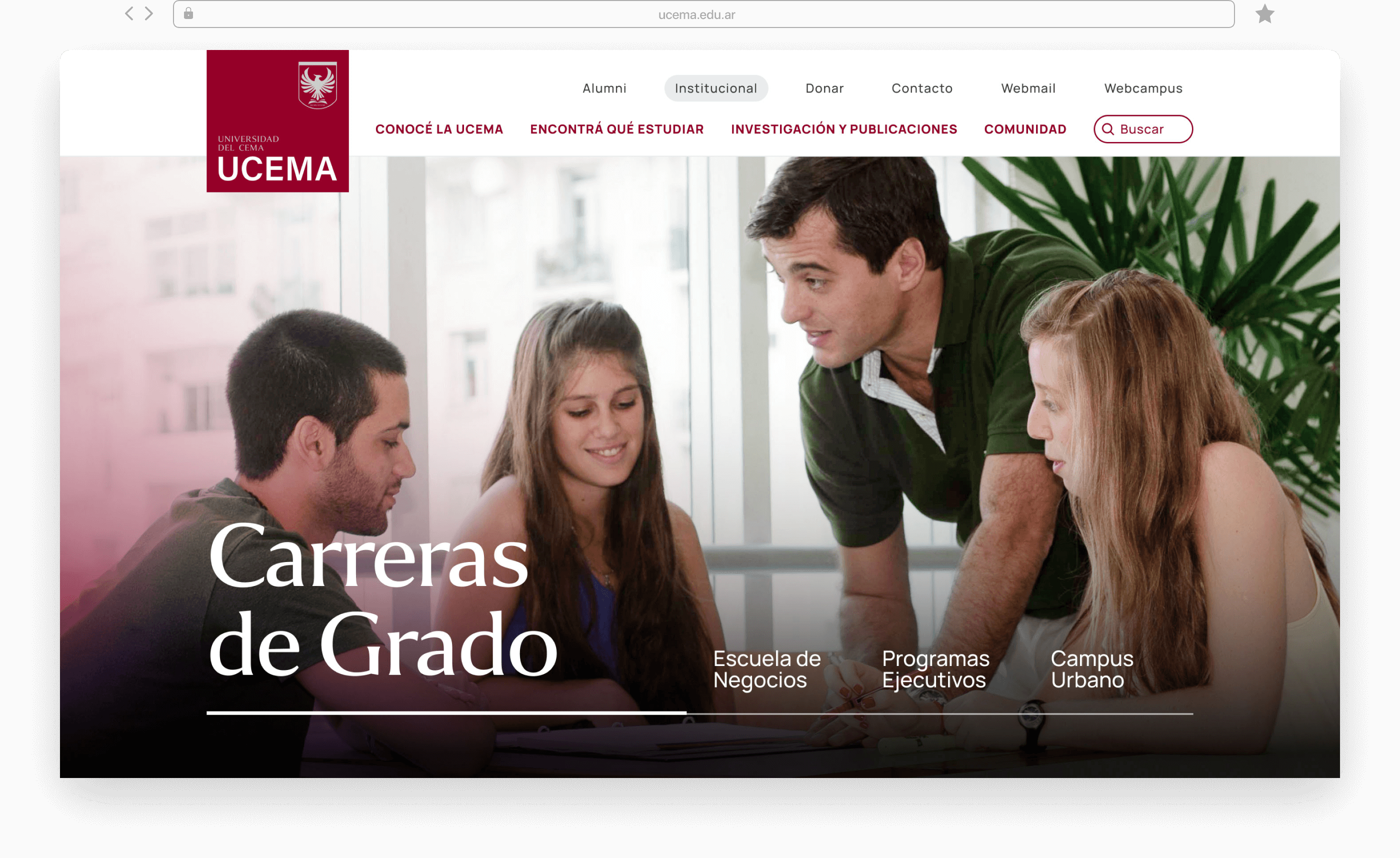 The website, as the digital home of the UCEMA, must not only transmit the values of the institution, but also be the tool that unites the University with its community and invite other people to trust and join it.